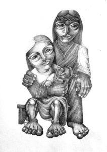 Los dibujos a lápiz pertenecen a la artista y docente Ana Argentina Reyes Sosa, Negra, como se la conocía cariñosamente en su pueblo, Sarmiento, provincia del Chubut, lugar donde nació y residió.